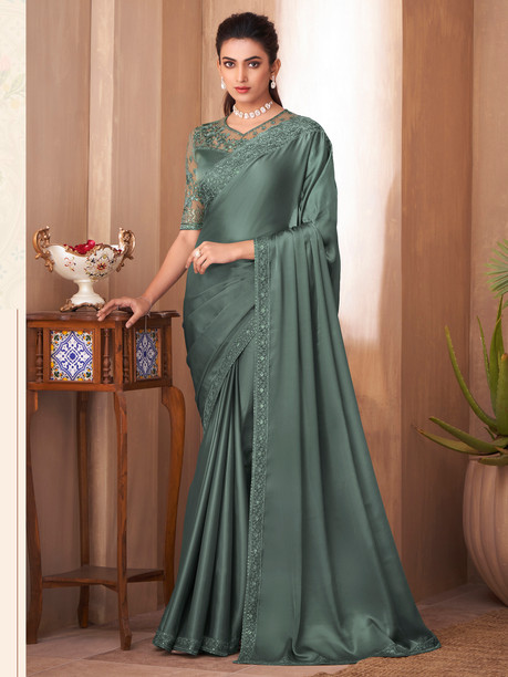 Embellished Bollywood Satin Saree