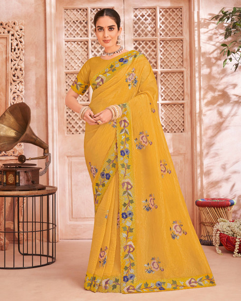 Embroidered Bollywood Art Silk Saree