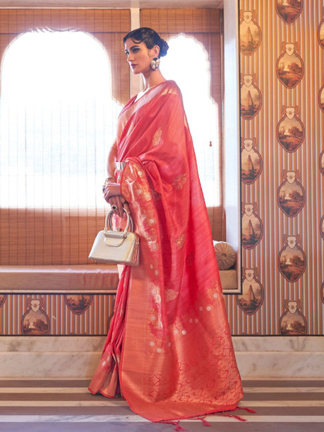 Woven Saree with Attached Blouse Satin Saree
