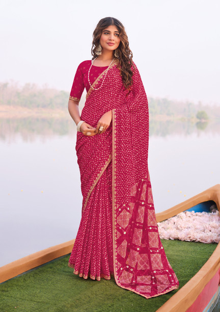Embellished Saree with Attached Blouse Georgette Saree
