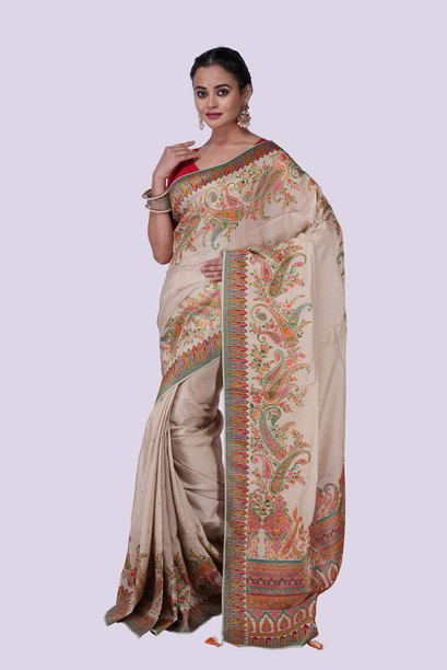 Embroidered Handloom Semi-Pashmina Saree