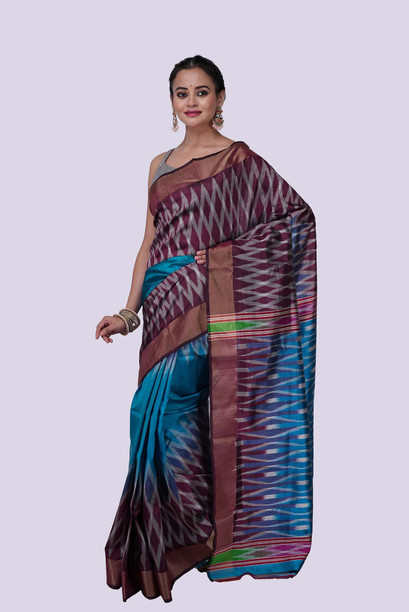 Woven Saree with Attached Blouse Silk Blend Saree