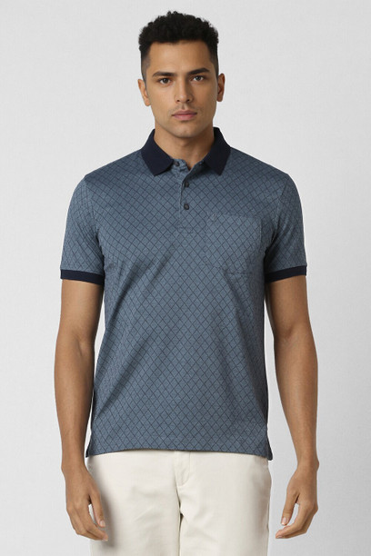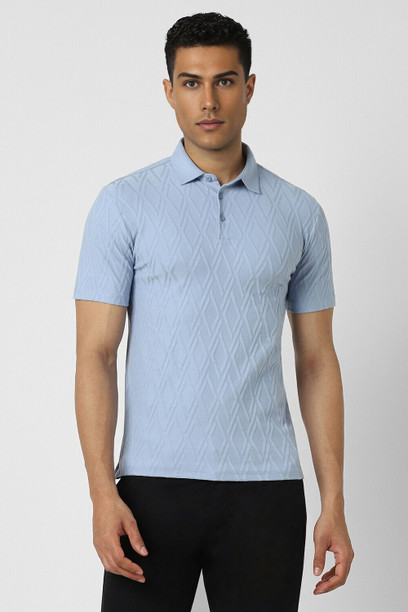 Men Self Design Polo Neck Cotton Blend Blue T-Shirt