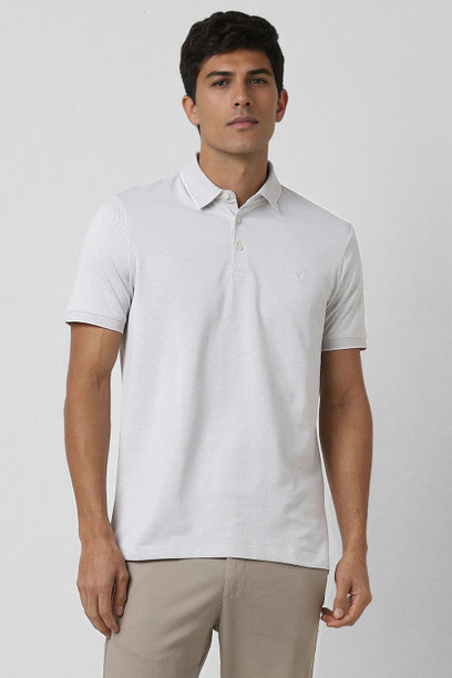 Men Polka Print Polo Neck Cotton Blend White T-Shirt
