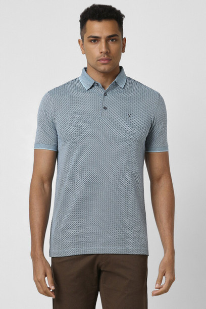 Men Printed Polo Neck Pure Cotton Light Blue T-Shirt