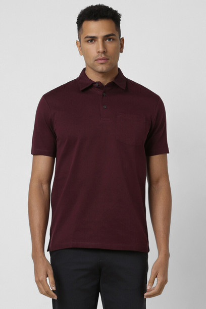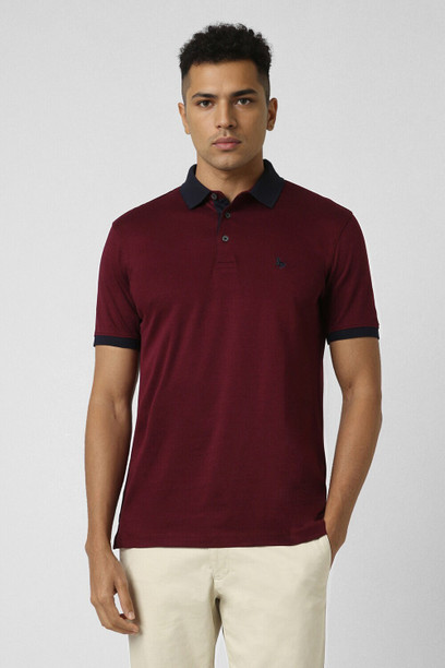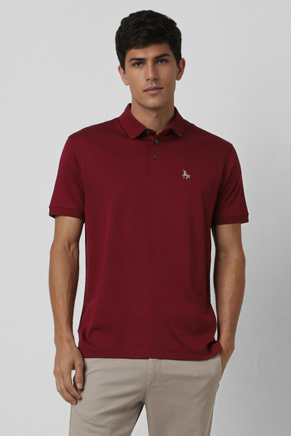Men Solid Polo Neck Pure Cotton Maroon T-Shirt