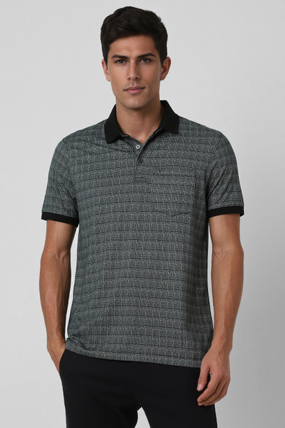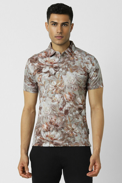 Men Printed Polo Neck Cotton Blend Grey T-Shirt