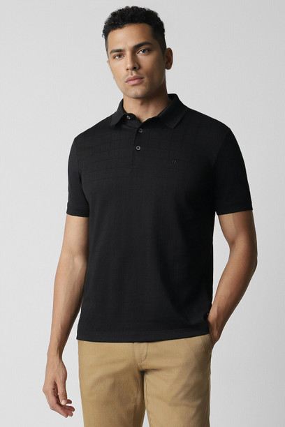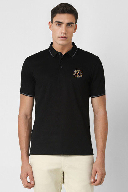Men Solid Polo Neck Pure Cotton Black T-Shirt