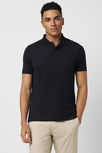 Men Solid Polo Neck Polycotton Dark Blue T-Shirt