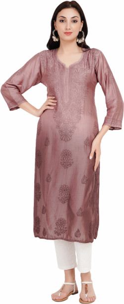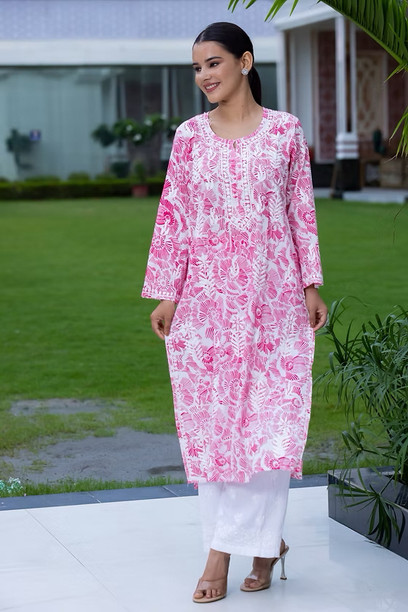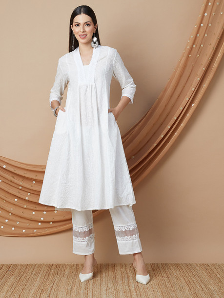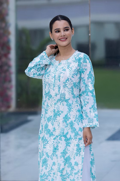 Women Chikan Embroidery Pure Cotton Ethnic Dress