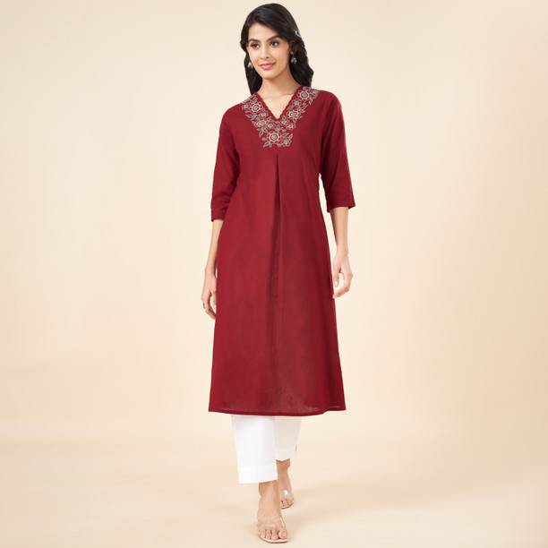 Women Solid Cotton Blend Ethnic Dress