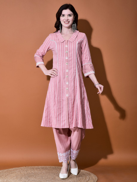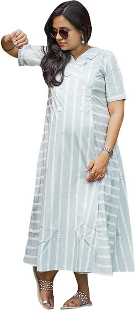 Women Striped Viscose Rayon Ethnic Dress