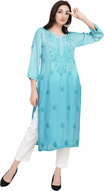 Women Chikan Embroidery Pure Cotton Ethnic Dress