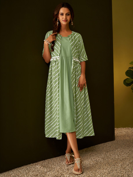 Women Striped Cotton Blend Ethnic Dress