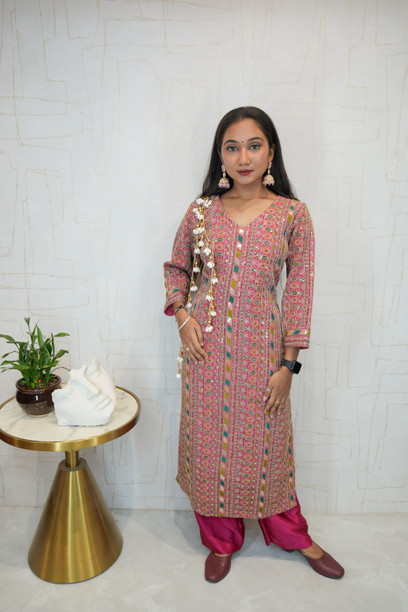 Women Chikan Embroidery Chanderi Ethnic Dress