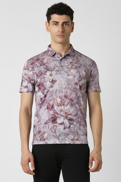 Men Printed Polo Neck Pure Cotton Purple T-Shirt