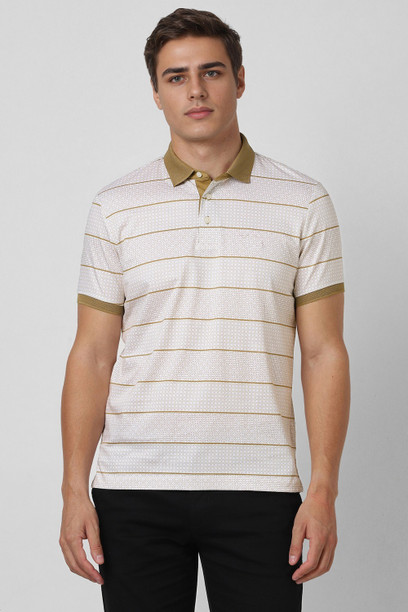 Men Striped Polo Neck Pure Cotton White T-Shirt