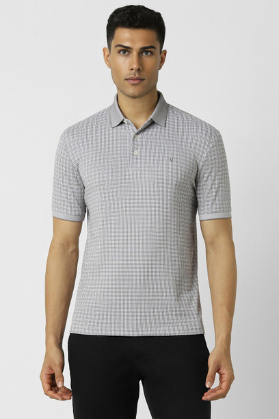 Men Checkered Polo Neck Polycotton Grey T-Shirt
