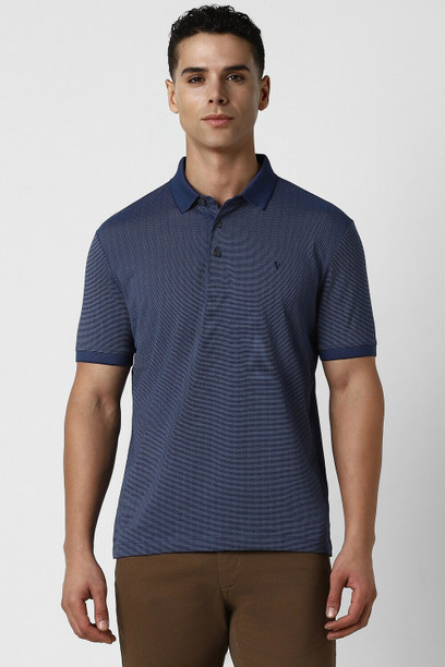 Men Self Design Polo Neck Cotton Blend Blue T-Shirt