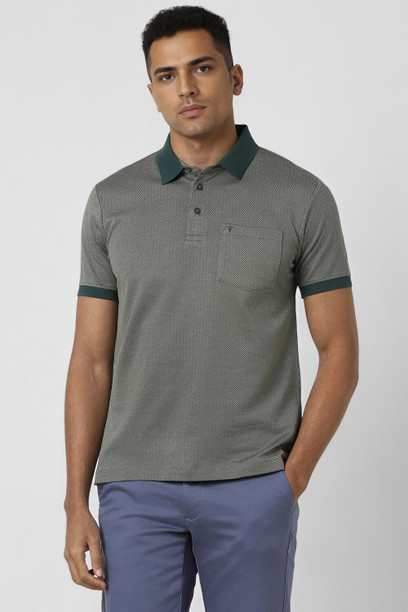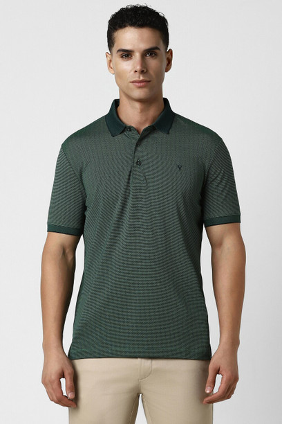 Men Printed Polo Neck Pure Cotton Green T-Shirt