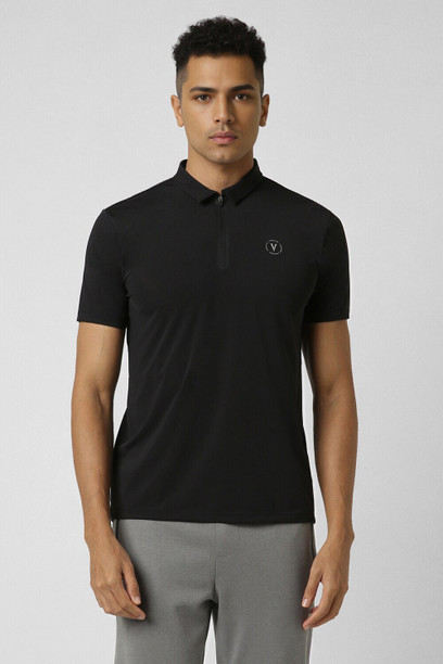 Men Solid Polo Neck Pure Cotton Black T-Shirt