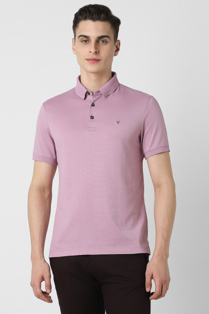 Men Solid Polo Neck Cotton Blend Purple T-Shirt